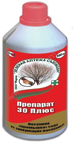 ПРЕПАРАТ 30 ПЛЮС 0,5л (12) ПРЕПАРАТ 30 ПЛЮС 0,5л (12) ПРЕПАРАТ 30 ПЛЮС (760 г/кг вазелинового масла). НАЗНАЧЕНИЕ: Весенняя "промывка" сада от зимующих вредителей. Защита плодовых деревьев, ягодных кустарников, цитрусовых, винограда и декоративных культур от зимующих стадий насекомых, клещей и "бродяжек"щитовок.Овицидный эффект-уничтожение зимующих яиц насекомых и клещей.