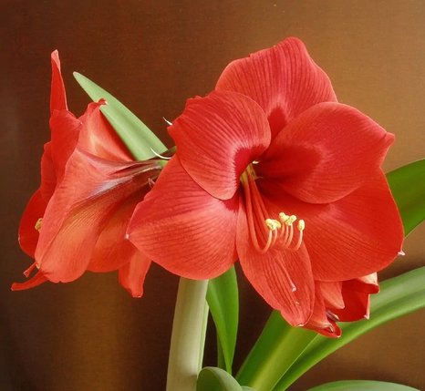 Амариллис – многолетнее красиво цветущее луковичное растение. Луковица состоит из короткого утолщенного стебля и сомкнутых замкнутых чешуй, округлая или округло-коническая. Листья линейные длиной 50-70 см. Цветонос представляет собой безлистный стебель от 35 до 80 см высотой. Цветки 15-25 см в диаметре, до 4...6 шт на цветоносе, воронковидные или трубчатые, самой различной окраски: ярко-красные, темно-вишневые, розовые, оранжевые, белые.
