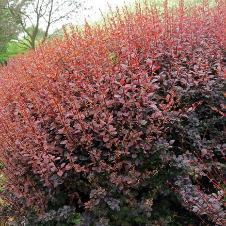 Энергично растущий крупный кустарник со слегка дуговидными побегами с насыщенно винно-пурпурной листвой без зубчиков по краю; высотой 2–2,5 м и 2–3 м в диаметре; окончательной высоты достигает за 8–10 лет. Осенняя окраска листьев также очень привлекательна — они становятся ярко-красными. Цветки жёлтые с красными мазками, собраны в кисти по 10 штук, появляются в мае. Позже куст украшают ярко-красные плоды, эффектно повисающие на дугообразно изогнутых ветвях.