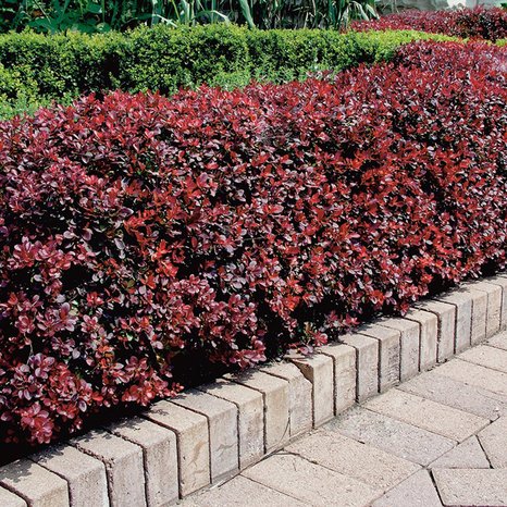 Кустарник высотой 0,5-0,8 м, диаметр кроны 0,8-1 м. Крона компактная, подушкообразная. Побеги короткие, прямостоячие или слегка изогнутые, покрыты красно-коричневой корой, почти не имеют шипов. Листья мелкие пурпурные или красно-коричневые, осенью - оранжево-красные. В мае на фоне пурпурных листьев появляются желто-красные цветки, собранные в кисти по 2-5 штук. Плоды - ярко-красные ягоды, созревают в октябре и сохраняются на растении почти всю зиму.