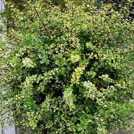 Кустарник высотой 1,2-1,5 м с раскидистой кроной. Крона округлая раскидистая, густоветвистая. Молодые побеги имеют ярко-зеленый оттенок. Данный сорт имеет небольшие колючие шипы. Листья яйцевидные, зеленые, с белыми пятнами в летний период, осенью пятна становятся розового оттенка. Листья длиной 1-3 см. мелкие, изящные, бордовые с белыми, розовыми и серыми пятнышками. Колючки простые от 0,5-1,8 см длиной. Цветет в конце мая — начале июня, обильно, продолжительность цветения до 20 дней. Цветки одиночные или собраны в соцветия по несколько штук, светло-желтые расположены по всему побегу. Плоды эллипсоидальные, блестящие, многочисленные, ярко-красные. Для формирования ровного куста необходима регулярная обрезка в весенний период до распускания почек. При формировании в изгороди рекомендуется проведение прищипки в июле-августе.