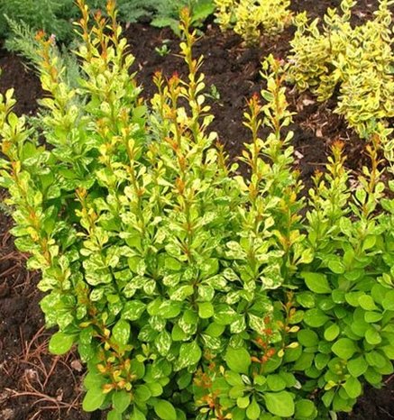 Плотный, колонновидный кустарник. До 1,5 м высотой и 0,5 м диаметр кроны.Цветет в конце мая, мелкими желто-красными цветками. Плоды розово-красные, не съедобные. Листья небольшие, округлые, меняют свою окраску от желтоватой весной до зеленой с бело-кремовыми мазками летом, осенью оранжево-красные. Зимостоек, морозостоек, солнцелюбив. Хорошо переносит городские условия. Устойчив к болезням и вредителям. Медленнорастущий.