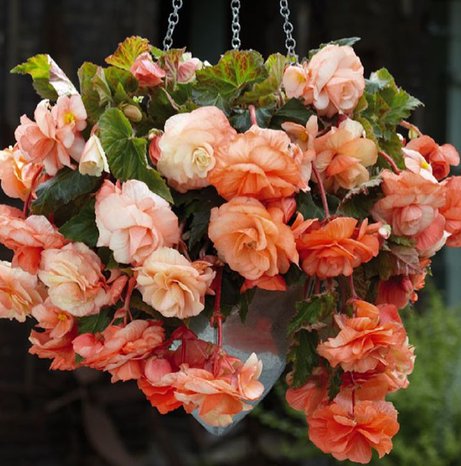 Бегония Каскад Пастэль (Cascade pastel) Оригинальный ампельный сорт. Высота растения 20-30 см. На одном растении формируются крупные (5-8 см) махровые цветки с разнообразной окраской пастельных тонов. Цветение обильное и очень продолжительное