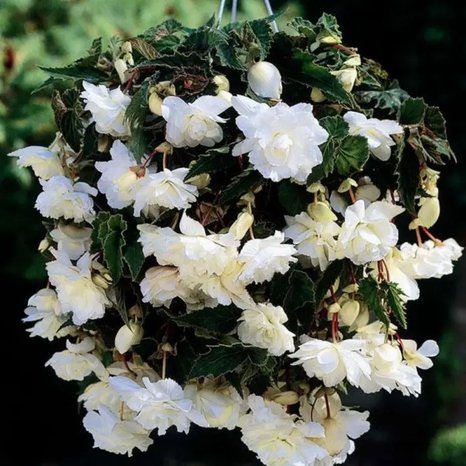 Ампельная. Высота растения 20-30см. Цветки махровые, диаметром 5-8см, на длинных цветоносах, белой окраски. Цветение обильное и очень продолжительное.