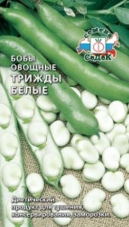Среднеспелый (от всходов до технической (молочно-восковой) спелости 80-90 дней, до созревания семян 105-115 дней) сорт. Растение прямостоячее, высотой 1,0-1,2м, среднеоблиственное, с белыми цветами. Бобы длинные, до 15см, широкие, зелёные, 4-х семенные, с толстыми мясистыми створками. Семена крупные, овальные, сплюснутые, белые. Урожайность 0,5-0,8 кг/м2. Холодостойкие, светолюбивые, влаголюбивые, неприхотливые к условиям выращивания и плодородию почв. Ценность сорта: устойчивость к комплексу болезней, к гороховой зерновке и не повреждается долгоносиками, высокие вкусовые, потребительские и технологические качества. Рекомендуется для использования в домашней кулинарии (тушения, консервирования, замораживания), особенно в диетическом питании.