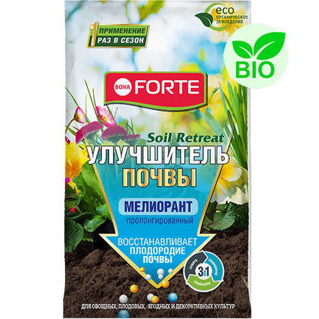 Мелиорант – природный почвоулучшитель, используемый для обновления почвы и экономичного использования удобрений. При внесении удобрений в комбинации с мелиорантом уменьшается необходимость повторного внесения подкормок.