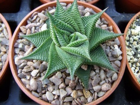 Миниатюрный суккулент. Обладает жёсткими листовыми пластинами, ширина которых составляет 4 см. Примечательна рисунком: линии в виде волны на верхней стороне практически зеркально отображены на нижней. Отлично подходит для небольших горшков и станет стильным элементом декора в любом интерьере.