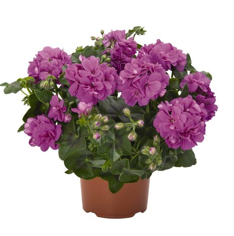 Махровая плющелистная пеларгония. Отличается пышным кустом, яркими цветами и хорошей адаптацией к городским условиям. Высота растения 30–50 см. Форма растения кустовая, пышная, вьющаяся. Листья плющевидные, темно-зелёные, глянцевые. Цветки крупные, махровые, сиренево-розовой окраски, собраны в кистевые соцветия.