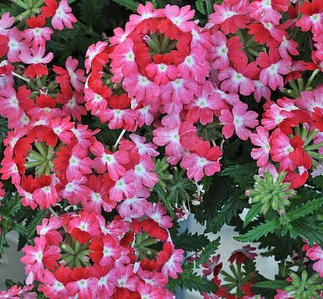 Красивое низкорослое растение с крупными соцветиями. Высота растения 20-25 см. Диаметр соцветий 5-7 см. Цветки двухцветной окраски: карминово-белые. Прекрасно смотрится в бордюрах, цветниках, балконных ящиках