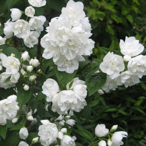 Высота до 2-3 м, диаметр кроны до 1,5 м. Цветет июнь-июль белыми, махровыми цветками, с тонким ароматом. Листва зеленая. Зимостойкость высокая.