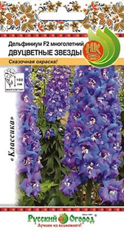 Дельфиниум Двуцветные звёзды F1 – экстраординарное дополнение ваших садовых посадок! Результаты многолетних селекционных работ никогда не проходят даром: теперь вы можете вырастить необычные двуцветные дельфиниумы нежных, но при этом ярких окрасок. Перед вами раскроется небесный синий и неоновый фиолетовый цвета. Соцветия высокие, больше 1,5 м, пропорциональные. В сезон цветения, который начинается с июля, дельфиниум усыпан махровыми и полумахровыми цветками, диаметром от 6 см до 8 см. Дельфиниумы не боятся суровых зим и хорошо могут зимовать без укрытий, однако они не выносят весенних заморозков, если не защищены. Поэтому выбирая место посадки, старайтесь расположить его там, где как можно позже образуются весенние проталины. Для этого следует понаблюдать за садом в начале весны.