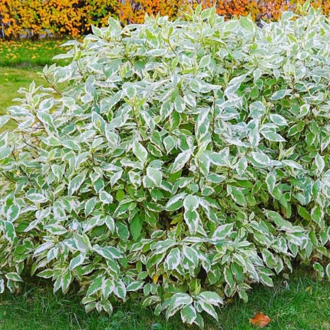 Куст невысокого роста до 3 м. Ветви раскидистые, гибкие. Молодые побеги имеют оливково-зеленую кору. Поближе к осени она краснеет и становится бордово-красной. Листья слегка морщинистые, серо-зеленые, через весь листок проходит широкая белая полоса Цветки дерена Элегантиссима белые с розовым оттенком. Они собраны в соцветия щитки. Плоды шаровидные костянки, имеют белый цвет с желтым или синеватым оттенком.