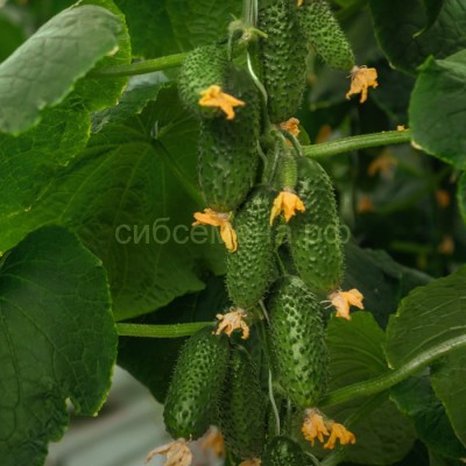 Растение открытого типа, мощная корневая система, междоузлия укороченные, лист среднего размера, насыщенного зеленого цвета, наличие многочисленных детерминантных боковых побегов, женского типа цветения – 2–3 завязи в узле (до 4-х), длинна плода 6–8 см, средняя масса плода 60–80 г, диаметр 3,1 см, насыщенного зеленого цвета с небольшими светло-зелеными полосками на кончике плода, поверхность бугорчатая, форма плода цилиндрическая. Устойчив к настоящей мучнистой росе. ДЛИТЕЛЬНЫЙ СРОК ХРАНЕНИЯ БЕЗ ПОТЕРИ ВКУСОВЫХ КАЧЕСТВ И ТОВАРНОГО ВИДА. РЕКОМЕНДОВАН ДЛЯ ФАСОВКИ НА ПОДЛОЖКУ.