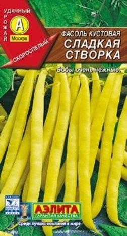 Скороспелый спаржевый сорт. Вступает в плодоношение на 45-55 день от всходов. Растения кустовые, высотой 40-45 см. Бобы мясистые, длиной 14-17 см. Сорт сахарный, пергаментный слой и грубое волокно в створках бобов отсутствуют, в пищу используется целиком лопатка с недозрелыми семенами. Рекомендуется для домашней кулинарии и сезонных заготовок – маринования и замораживания. Урожайность 1,5-2 кг/м2.