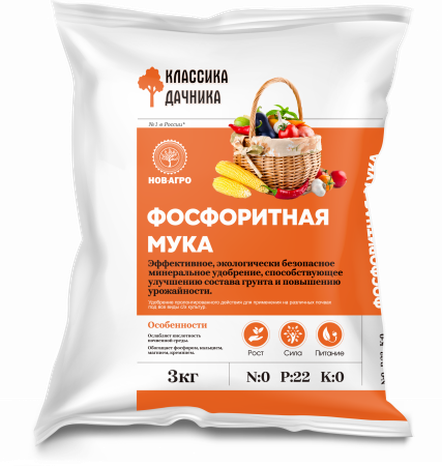 N:P:K 0:22:0. Удобрение пролонгированного действия для применения на различных почвах под все виды сельскохозяйственных культур. Ослабляет кислотность почвенной среды, обогащает фосфором, кальцием, магнием, микроэлементами. Улучшает структуру и повышает плодородие почв сельскохозяйственных угодий.