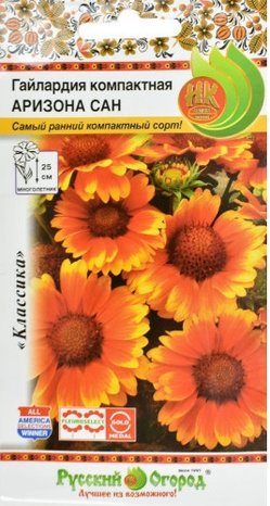 Гайлардия Аризона Сан – самый компактный сорт! При этом его отмечают не только садоводы, но и жюри международных конкурсов. Так, в 2005 году Аризона Сан получил Золотую Медаль на конкурсе Fleroselect. Из-за своего умеренного роста, садоводы обожают высаживать гайлардию вдоль бордюров на солнечных участках, на передние планы цветников и рядом с постройками в саду. При этом не думайте, что небольшая высота означает и появление более маленьких соцветий. Наоборот! Цветы у гайлардии крупные, до 9 см в диаметре! В результате приготовьтесь наблюдать яркую солнечную посадку с красивыми большими соцветиями! Также вы можете посадить их и в контейнеры или вазоны, при этом можно даже сольно, так как разрастается гайлардия хорошо. Правда, так как первые цветы появятся только на следующий год, первый год вы застанете только увеличивающуюся в размерах розетку листьев.