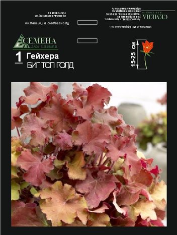 Многолетник с декоративными листьями. Листья абрикосовые с зеленоватым и янтарно-оранжевым, снизу пурпурно-розовые. Цветки кремовые. Период цветения июль-октябрь. Высота растения 40-60 см. Гейхера не прихотлива в выращивании и имеет высокую зимостойкость.