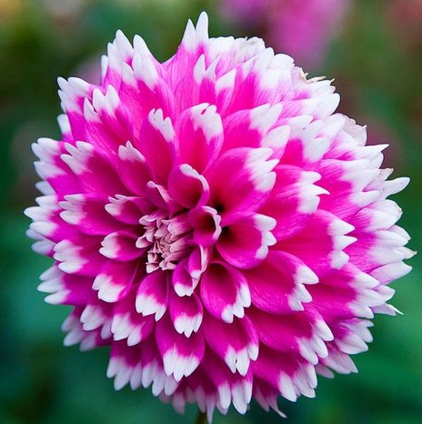 Бахромчатый. Высота растения 100-120 см. Соцветия густомахровые, ярко розовые с белыми кончиками, достигают в диаметре 18 см. Цветение наступает в июле-августе.