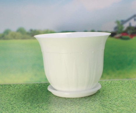 Пластиковый горшок с поддоном классической формы идеально подойдет для выращивания растений домашних