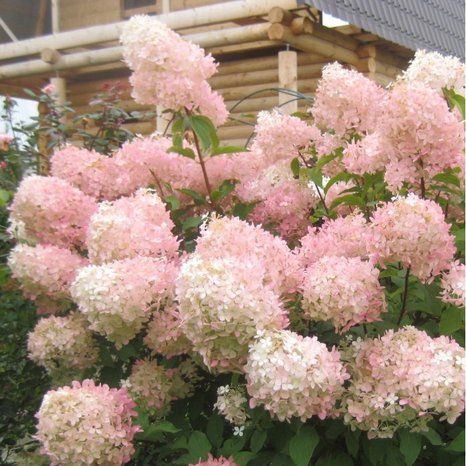 Среди метельчатых гортензий у этого сорта самые большие конические соцветия, при распускании они светло-кремовые, затем изменяются до слегка розовых, цветение обильное в июле-сентябре, куст выносливый, высотой 200 см, с длинными ветвями, требует солнечного места и влажной почвы.