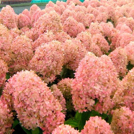 сначала белый с лёгким лаймом, затем постепенно переходит в розовый к концу цветения. Куст компактный, до 1,5 м высотой, с веерообразной кроной. Побеги прочные, жёсткие, буро-коричневого цвета. Листья яйцевидной формы, насыщенно-зелёного цвета, с острой вершиной.
