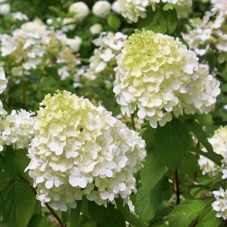 Очень эффектный сорт. Цветки большие, вначале цвета лайма, затем быстро белеют и долго остаются такими, к концу цветения слегка розовеют. Соцветия конусовидные, очень большие, плотные, очень равномерно распределены в кусте. Вершина конуса в средине цветения рыхлая, имеет оттенки светло-жёлтого цвета. Цветение с июля до заморозков. Побеги крепкие. Куст высотой 180 см и шириной 120 см, похож на гигантский букет. Место солнечное или полутенистое, почва влажная, дренированная, зона 2 (до -40°). Соцветия достигают большого размера к 3-4-летнему возрасту куста и при удалении весной тонких и слабых побегов.