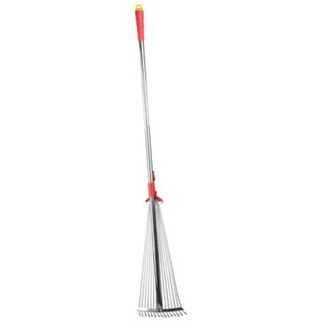 Зубцы грабель изготовлены из высококачественной стальной оцинкованной проволоки диаметром 3мм. Механизм фиксации зубцов позволяет регулировать ширину рабочей части от 17 до 66см. Ручка фиксатора изготовлена из нейлона, армированного фибергласом, что гарантирует продолжительный срок службы изделия. Длина металлической ручки 1200мм. Применяются для уборки опавших листьев и скошенной травы на садовых и огородный участках.