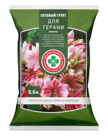 Грунт для Герани 2,5л Скорая помощь (СЗТК/Агроторф)