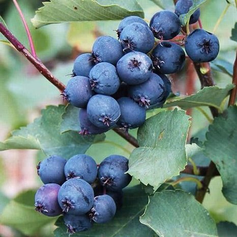 Ирга Мартин формирует среднерослый многоствольный куст, до 3м высотой. В плотной длинной кисти до 20 (а иногда и более!) крупных цветков! Ягоды до 1,5-1,7см в диаметре, округло-овальные, фиолетово-синие, в полной спелости почти черные, с восковым налетом, ароматные, шикарного нежно-сладкого вкуса.