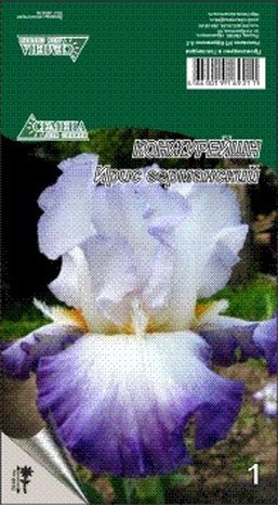 Хорошо зимующее многолетнее корневищное растение с мечевидными линейными прикорневыми листьями, собранными в вееровидные пучки. Высота растения 70-90см. Цветки крупные, верхние лепестки белой окраски, с мягким сине-сиреневым оттенком, нижние — белые с широкой фиолетовой каймой. Бородка оранжево-желтая. Рекомендуется посадка на хорошо освещенных месах или с частично затененныхм во второй половине дня, защищенных от ветра участки. На одном месте могут расти до 7-8 лет.