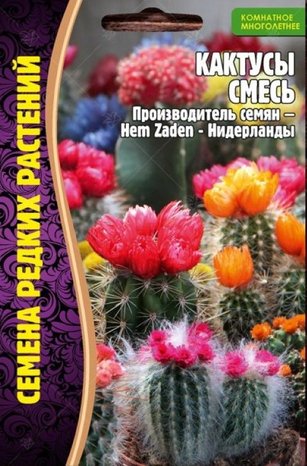 Комнатное , многолетнее растение. Смесь самых популярных, интересных и легко выращиваемых видов для домашнего выращивания. Форма стеблей, размер, форма и окраска колючек самая разнообразная. Растения являются нетребовательными комнатными культурами. Для данной смеси характерен длительный период всходов. Неприхотливы к условиям выращивания.