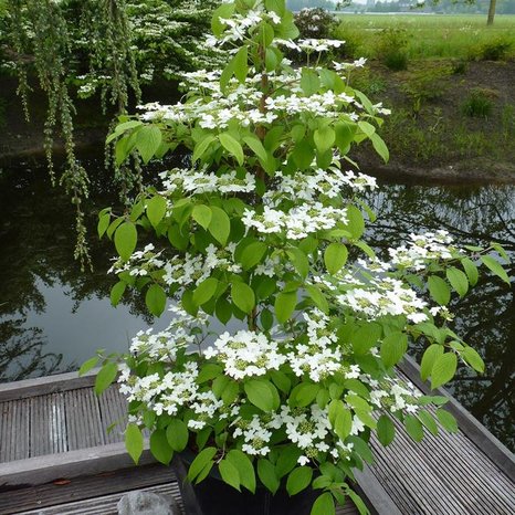 Красивый узкий кустарник высотой 180-240 см, диаметром 60-100 см, растёт как пирамида. Во время цветения выглядит как заснеженная гора Килиманджаро. Ветви расположены горизонтально. Цветки белые, в плоских соцветиях. Цветёт в мае, затем растёт, и второй раз может зацвести в конце лета. Между двумя волнами цветения образуются красные ягоды, которые медленно чернеют. Листва тёмно-зелёная, осенью окрашивается в красные и жёлтые тона. Место солнечное или полутенистое. Почва дренированная, влажная. Зона 4 (до -29ºС). Рекомендуется для одиночных посадок и выращивания в контейнере.