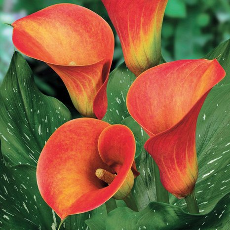 многолетнее растение, не зимующее в условиях Сибири, с толстым клубнем, образующее ежегодно большое количество листьев и несколько цветоносных стеблей. Высота растения 50-70см. Цветки желто-оранжевой окраски. Сорт с пестрой листвой.
