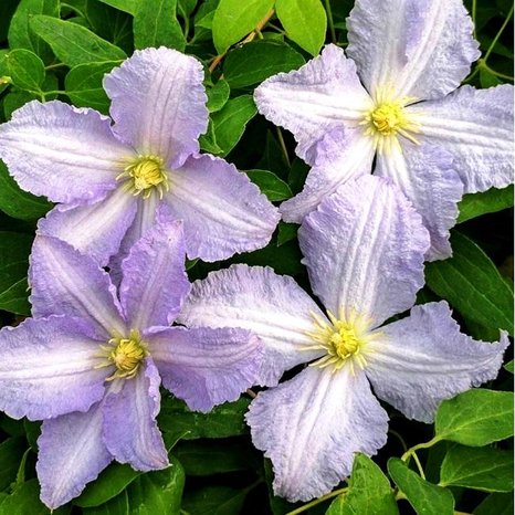 Высота растения 200-300см. Здоровый и умереннорастущий польский сорт, обильноцветущий. Цветки крупные, диаметром 12см, светло-голубой окраски, с волнистыми краями и жёлто-зелёными тычинками, распускаются с июня до августа. Цветёт на побегах текущего года (3-й способ).