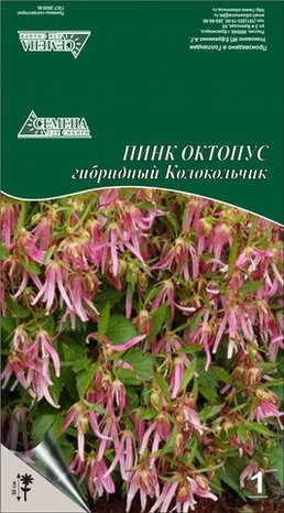 Травянистое растение семейства Колокольчиковые. Высота 45-60 см. Название которого переводится как "розовый осьминог" и дано за необычные цветки. Они розовые с узко-линейными лепестками, крупные на прямостоячих цветоносах. Каждое растение может дать до 50 цветков за сезон. Листья ярко-зеленые, глянцевые, с гравированным краем. Цветение июнь-июль.