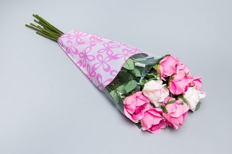Пакет для цветов конус прозрачный, с рисунком, металл с рисунком представляет собой универсальную цветочную упаковку, которая предназначена для классического оформления букетов для массовой реализации.