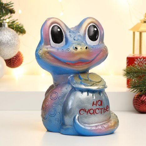 Копилка Змея с мешком денег H-18см голубая