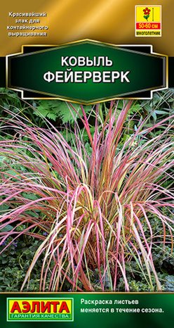 Эффектный многолетний злак 50-60 см высотой. Впечатляет раскраской листьев, которая, как у хамелеона, меняется в течение сезона. Ажурные колоски дополнительно украшают кустики с июня по сентябрь. Ковыль ФЕЙЕРВЕРК идеально подходит для объемных садовых вазонов, центра приподнятой клумбы, альпийской горки. Одиночное растение или небольшие группы хорошо смотрятся на фоне газона. Соцветия используются в срезке для живых и сухих цветочных композиций.