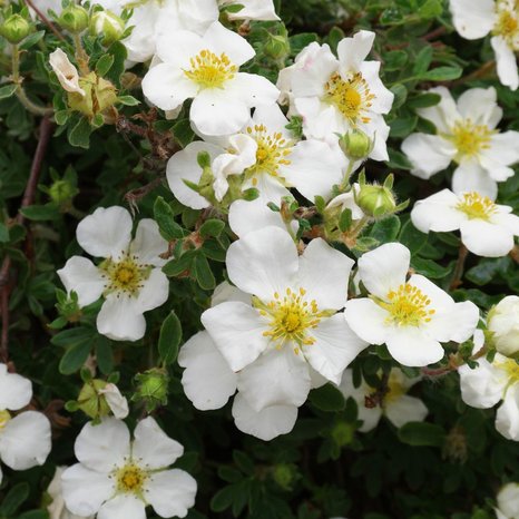 Компактный кустарник с округлой формой, высотой до 1 м и диаметром кроны до 1,3 м. Цветет небольшими белыми цветками до 3 см в диаметре с июня по октябрь. Листья желтовато-зеленые, состоящие из 3-7 ланцетно-яйцевидных листочков, до 3 см длиной. Засухоустойчив, к почвам неприхотлив. Светолюбив, но мирится с небольшим затенением. Зимостоек. Хорошо переносит городские условия. Устойчив к мучнистой росе. Ежегодный прирост в высоту и ширину 20-25 см. Продолжительность жизни 20-30 лет.
