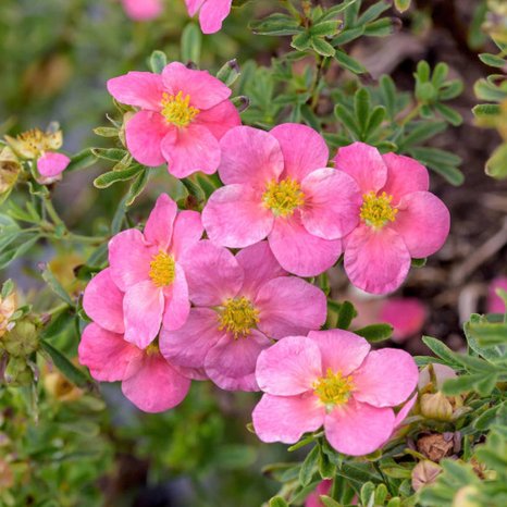 Пятилисточник кустарниковый.Необычайно выносливый, сильно ветвящийся кустарник. Листья состоят из пяти, редко из трех-семи, листочков, сначала нежно-зеленых, затем зеленых с серебристым оттенком из-за легкого опушения. Зимостоек. Засухоустойчив, но плохо переносит сухость воздуха.