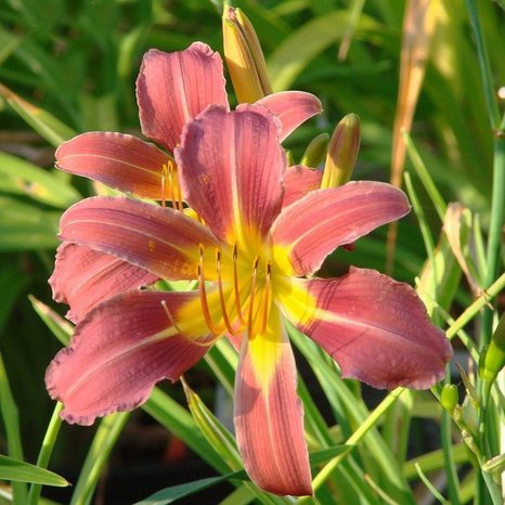 Эффектный и неприхотливый лилейник с цветками пурпурного цвета с гало. Горло желто-зеленое. Диаметр цветка до 12 см.Высота растения до 90 см. Листья мечевидно-изогнутые, светло-зеленого цвета, сохраняют декоративность весь сезон.Цветение в июле-августе.