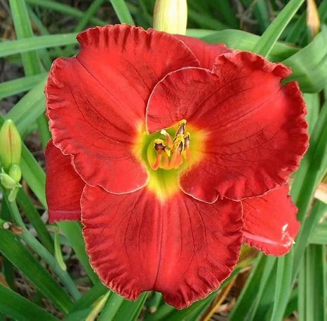 Лилейник Силоам Ред Той — корневищное растение высотой 50-60см. Его мечевидно изогнутые листья образуют плотные кусты. Цветки по форме похожи на цветки лилий — воронковидные, с небольшой трубкой, собраны в раскидистые соцветия. По окраске цветки ярко-красные с зеленым горлом, диаметром до 14см. Цветение с июня по август.