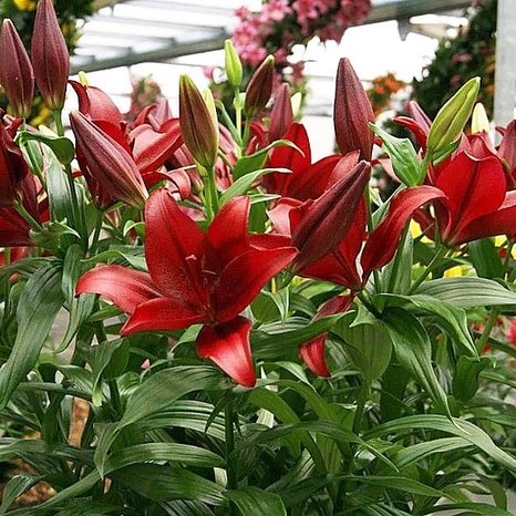 ЛА-гибрид. Вегетационный период 80-90 дней. Высота растения 100-110 см. Цветки направлены вверх, красной окраски, диаметром 14-18 см.