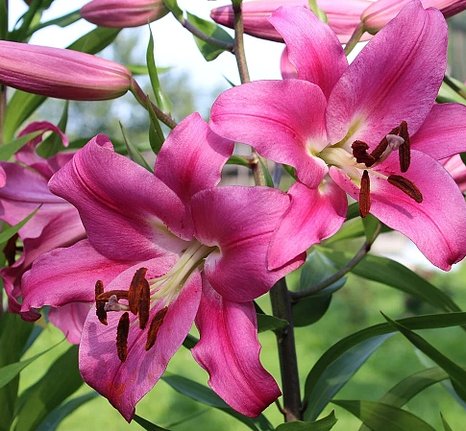 Лилия Лавестоун (Loverstown) ОТ-гибрид. Вегетационный период 90-100 дней. Высота растения 120-130 см. Цветок ярко розовой окраски с желтым центром, диаметром 19-22 см. Лепестки направлен вверх.