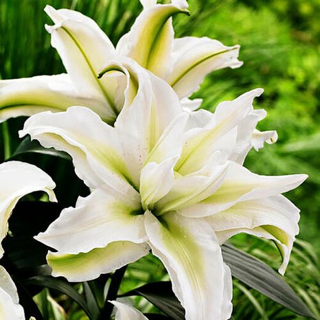 Махровый восточный гибрид. Вегетационный период 100-110 дней. Высота растения 110-120 см. Цветки густомахровые, крупные, диаметром 18-25 см, направленны вверх, со множеством волнистых по краям лепестков белой окраски и светло-салатовой сердцевиной, которая подчеркивает белизну основного цвета. Без пыльцы."