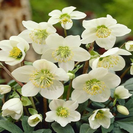 Морозник Нигер (Helleborus niger) Высота растения 30 см. Цветки простые, крупные, белые, снаружи с легким розовым оттенком, который усиливается к осени.