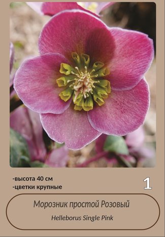Морозник простой Розовый (Helleborus Single Pink) Высота растения 40 см. Цветки простые, крупные, розовой окраски.