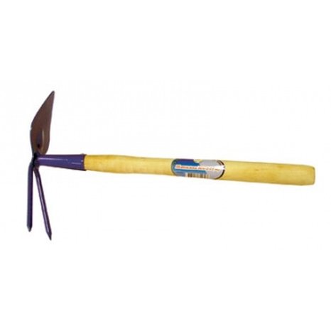 Металлическая рабочая часть в порошковой окраске с деревянной ручкой. Один конец лепесток, другой 2 прямых зубца. Подходит для прополки грядок и клумб, удаления сорняков.
