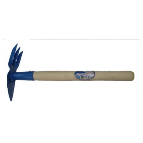 Мотыжка обладает комбинированной конструкцией, которая служит для обработки грядок от сорняков и подходит для рыхления и разравнивания почвы. Рабочая часть изготовлена из углеродистой стали и покрыта водозащитной краской, что обеспечивает долгий срок службы инструмента.
