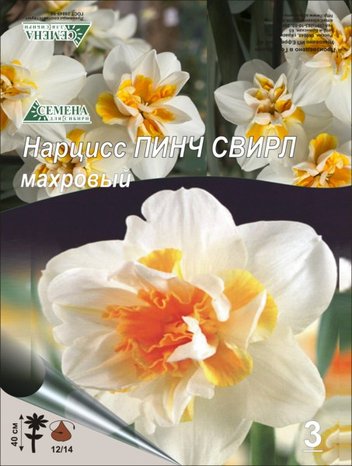 Нарцисс Пич Свирл (Пич Свирл)Высота растения 20-30 см. Цветок махровый белый с абрикосовой махровой коронкой, ароматный. Срок цветения: май - июнь.
